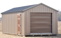 12x24 7' Gable, ,3/4" treated floor, 8x7 rollup door, 8x12 loft, 24' ridge light vented, walls buckskin, roof burnished slate.